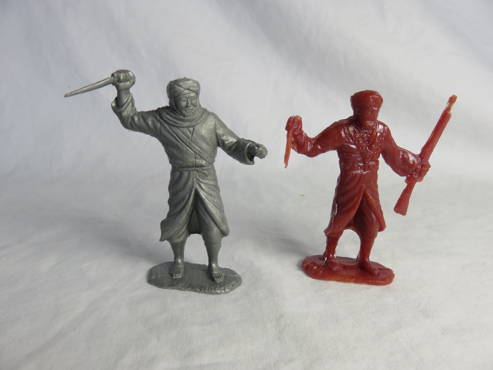 Here we have the new Arab advancing with rifle overhead with the old Marx Arab advancing with rifle across waist.