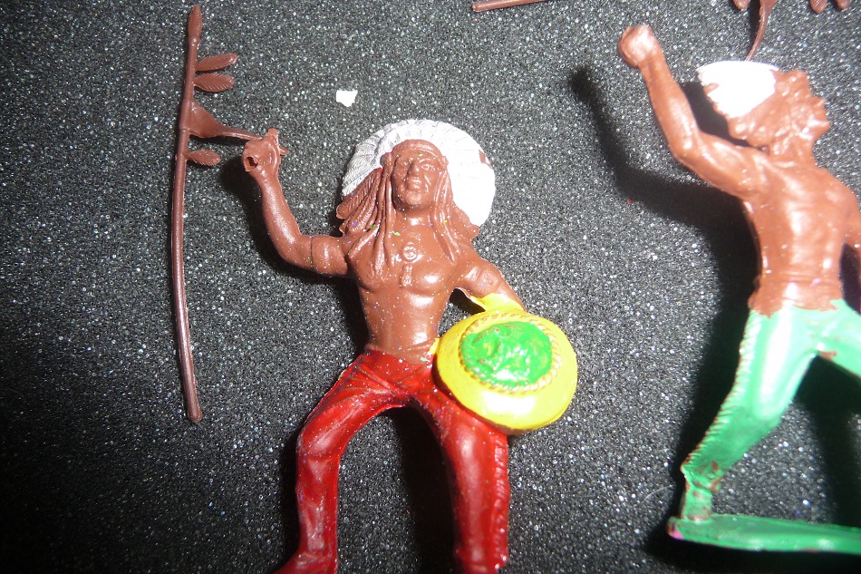 The cowboys and Indians are in 6 poses each. Cowboys made in plastic pink skin color base hand painted over at factory.