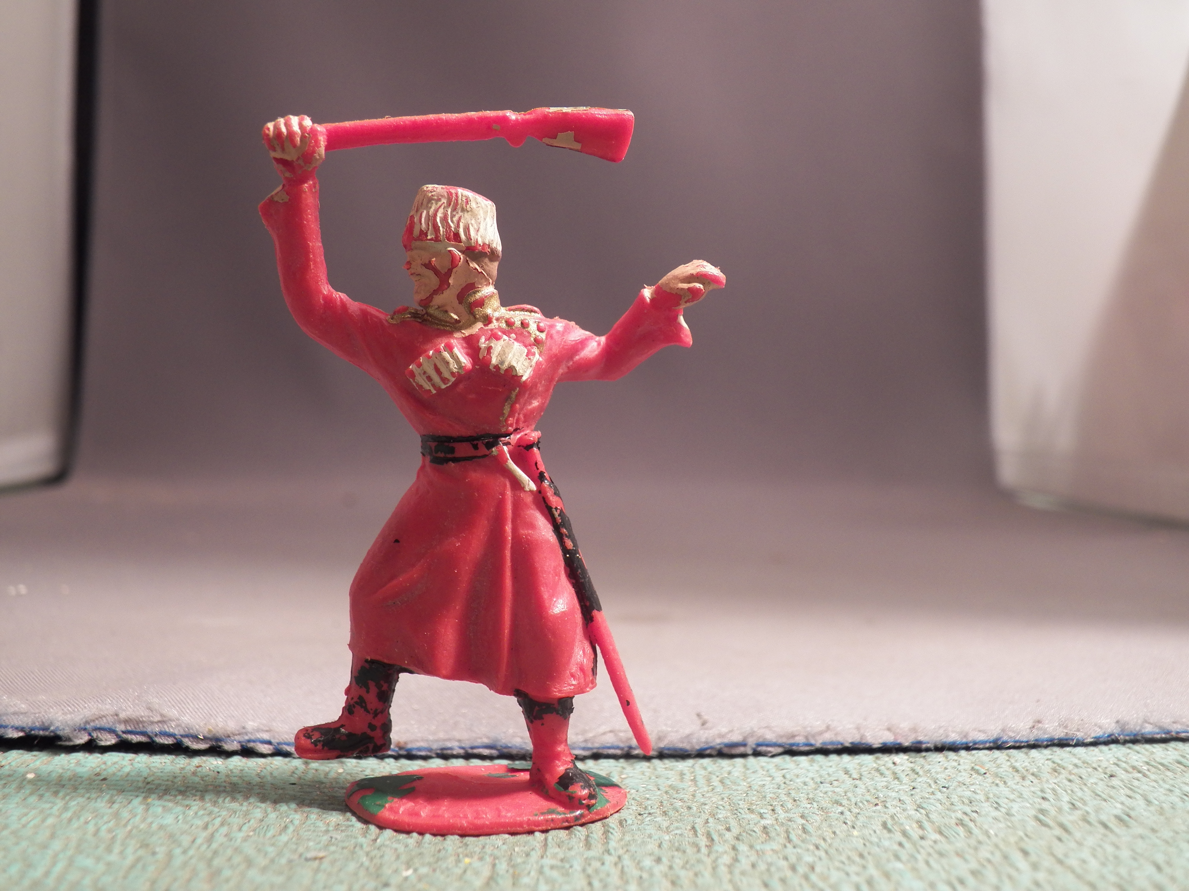 We have here on the Timpo solid Cossack clubbing. The mold is missing and these figures are very fragile.