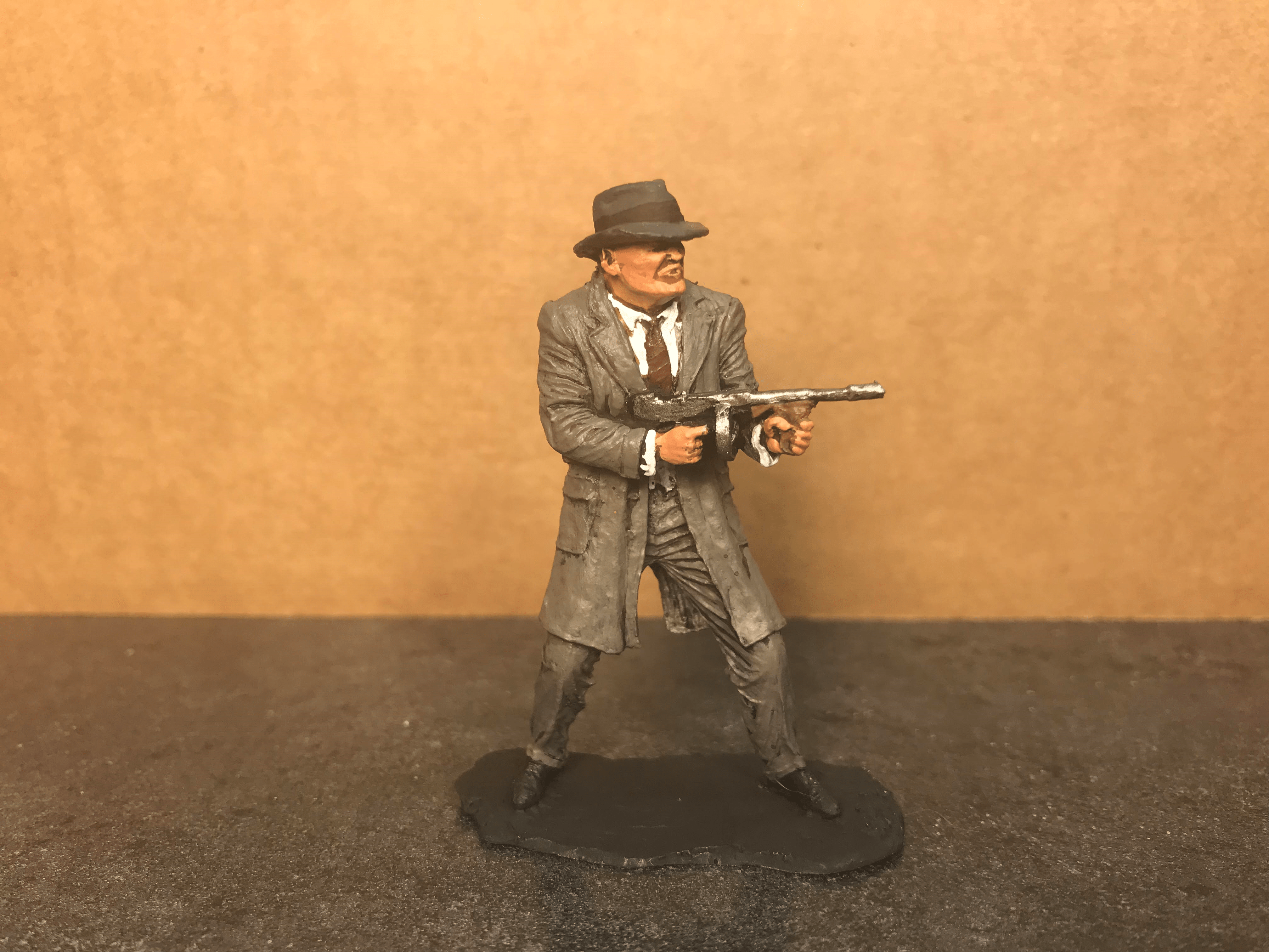 Our Gangster is available on EBay for $25 and comes in 5 different color variants. We will also be selling our gangster at the Chicago Toy Soldier Show. Our gangster is slightly larger than the Marx untouchables. However this is because our gangster has far more detail.