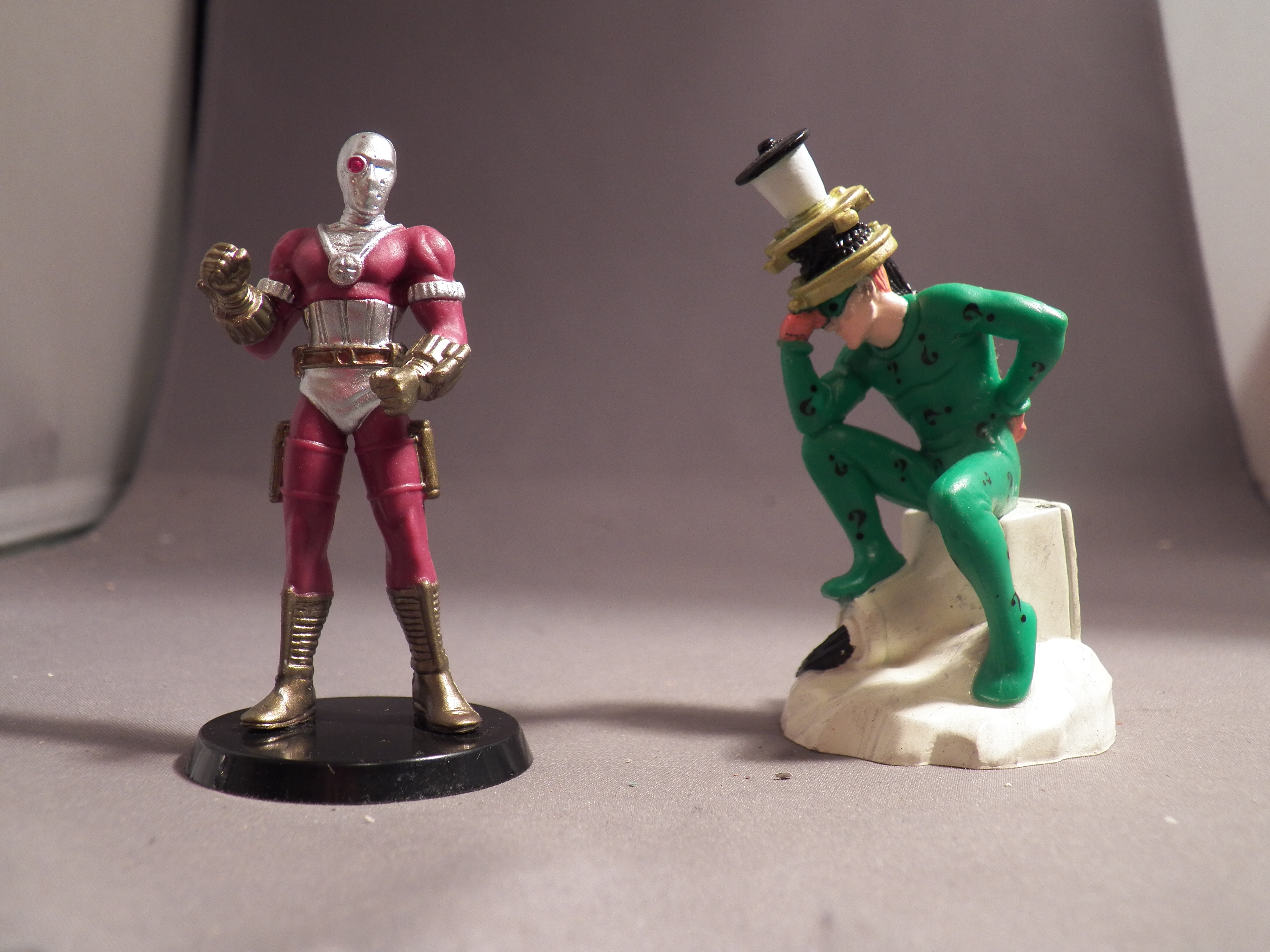 Since I use villians in the titles. I thought I would give two DC Super Villians. The figure on the left is Deadshot. On the right is the Riddler from the Batman and Robin movie. The Riddler was played by Jim Carrey