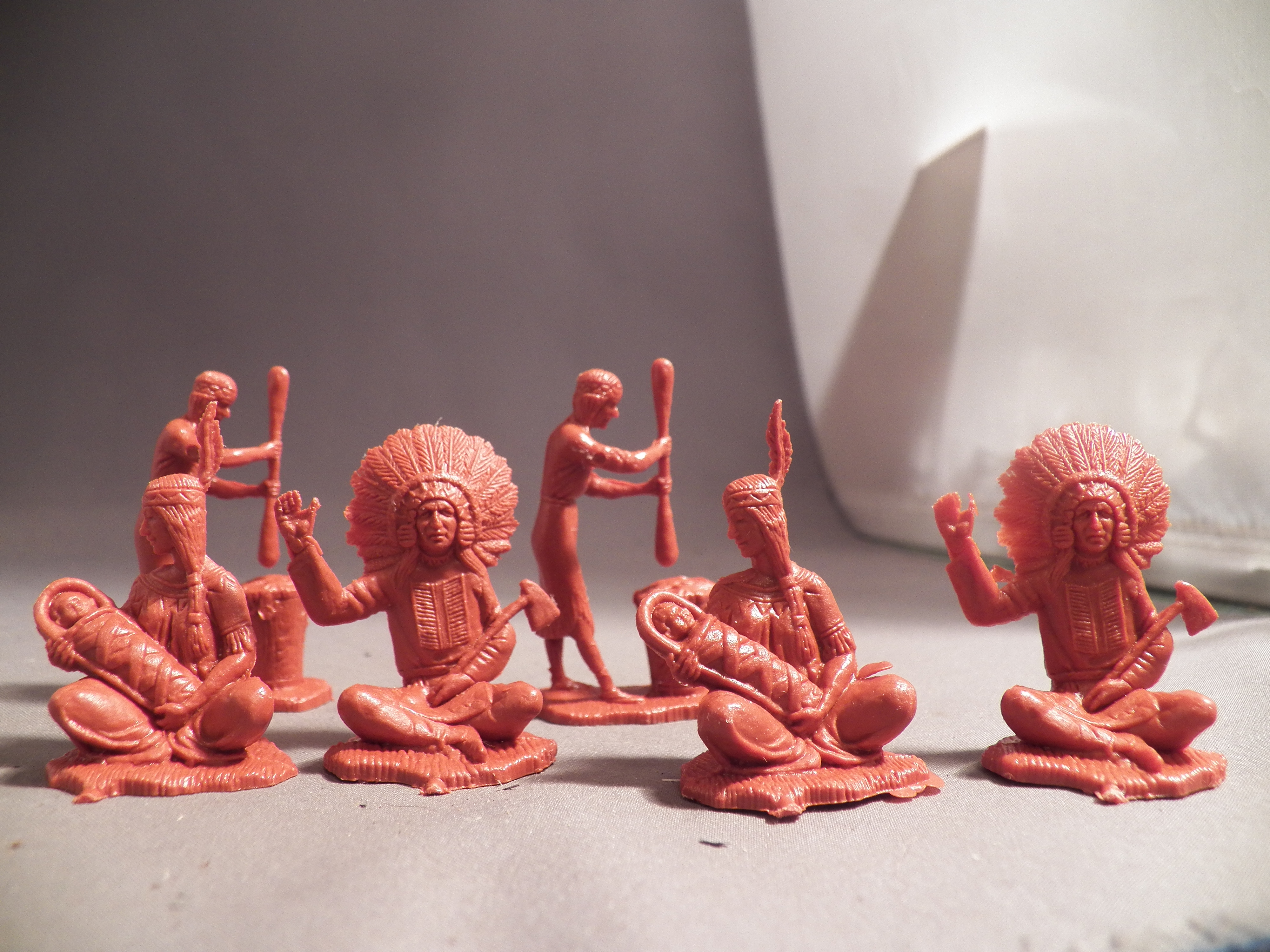 Here is Dulcop camp Indians. As you can see there are three different poses. The Indian woman stomping to make food is out of scale.