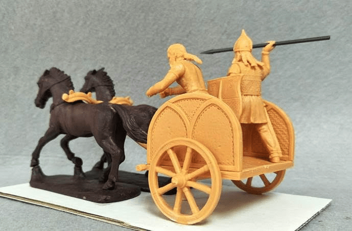 British Chariot with the M-side panels, and charioteer wearing the Waterloo helmet with Battersea shield. This is the actual plastic models from our test casting. They have already passed QC inspection.