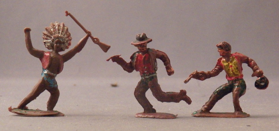 Three western figures on one hand are pretty crude. I do like cowboy with either hat or bag in his hand. I believe these figures are 45mm.