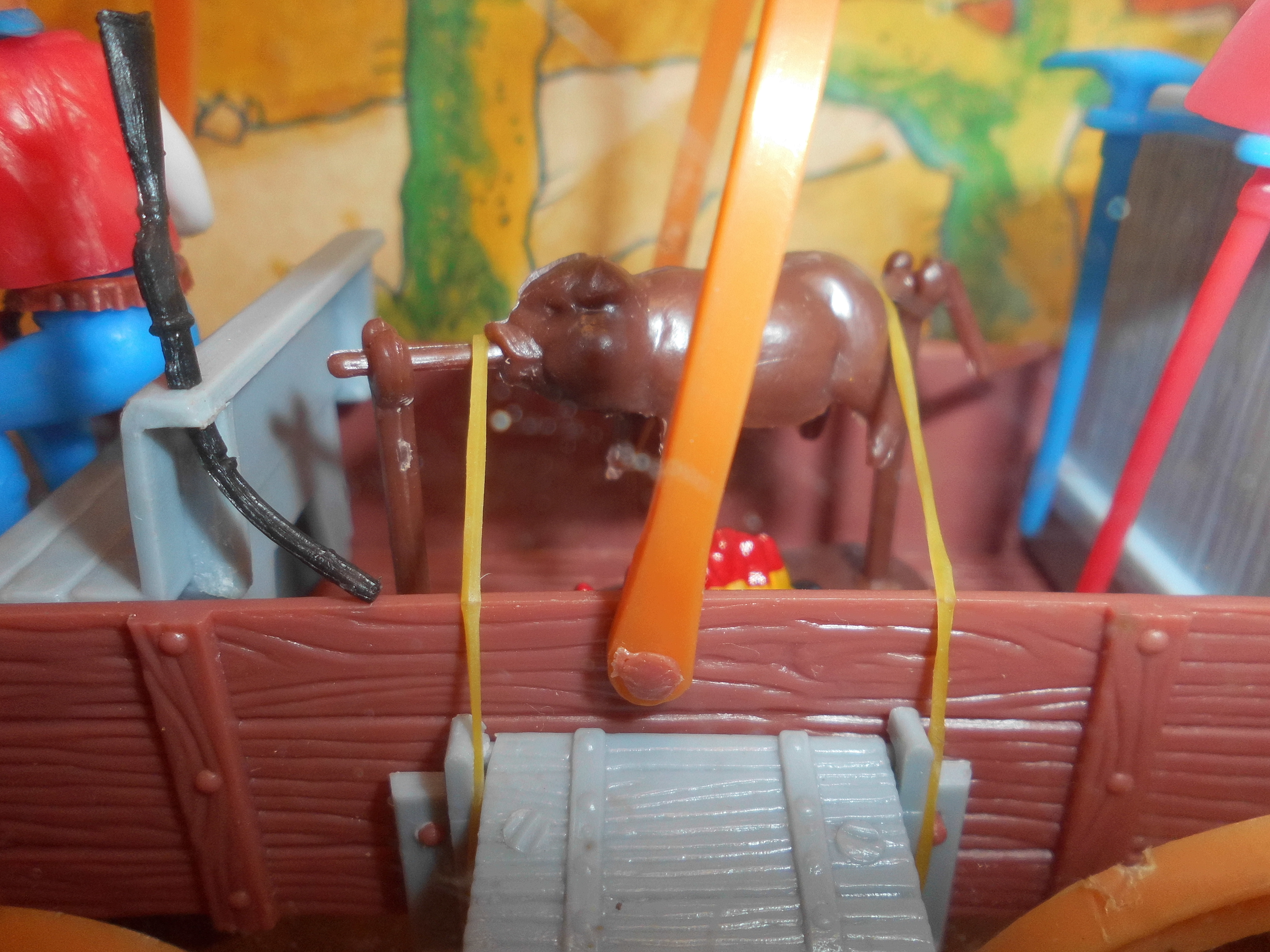 This close-up shows one item that is usually missing the wagon a pig roasted on spit. This piece naturally would not be kept on the wagon. Markus noted he had one as a child and he lost several pieces very quickly.