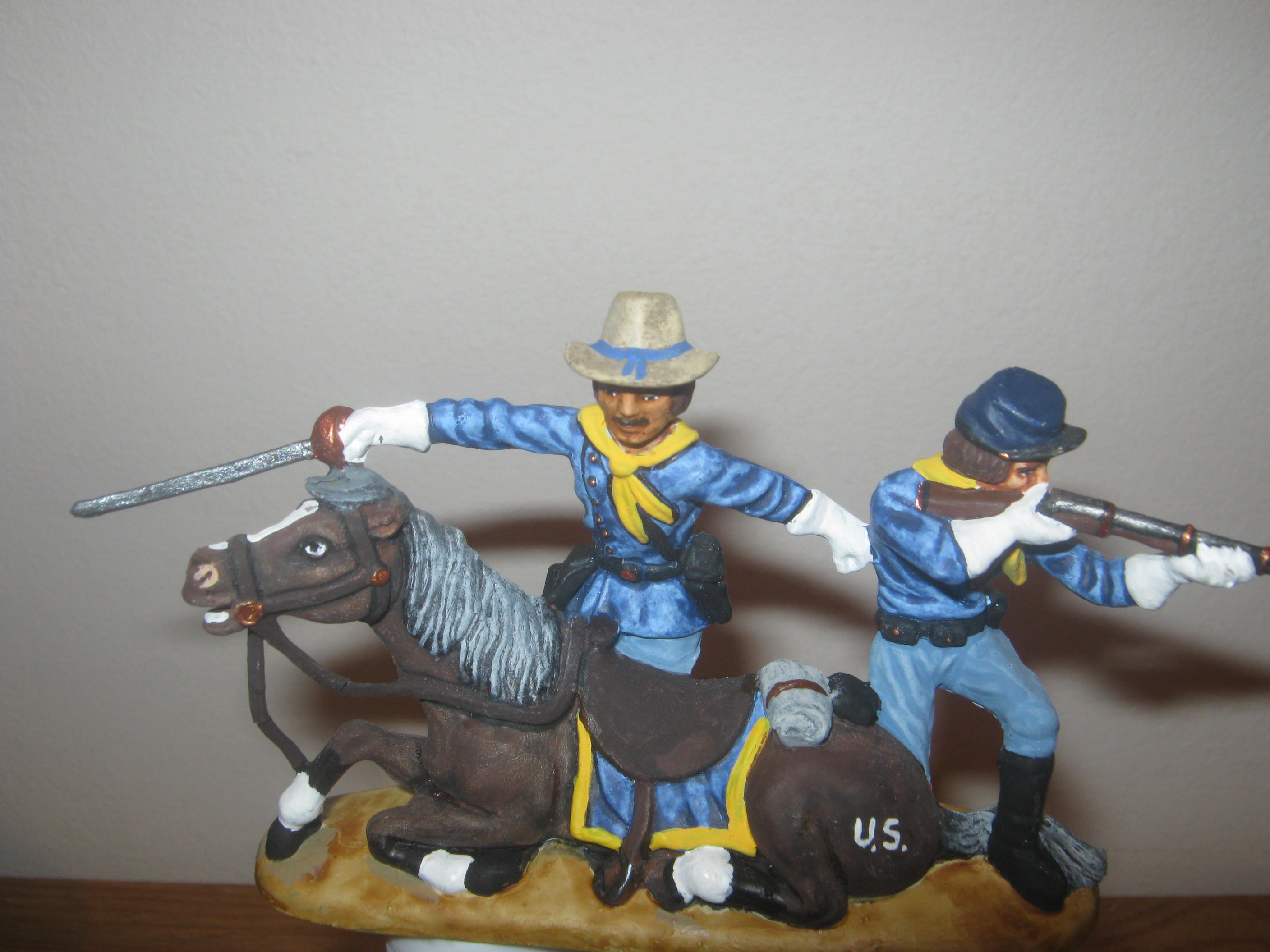 Hi Erwin. I painted the U.S. cav figure years ago. I don’t really know if they had the “U.S.” marked on there horses like that. I just took a bit of artistic license when doing it I seem to remember. I have all the cavalry, cowboy & indian sets plus lots of loose figures. I love painting them.