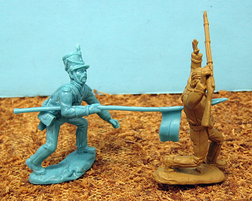 That made for a very unique pose for the Mexican lancer I had forgotten about the Conte pose. The Texican being run through is such a great action pose. I really like the arms up in the air positioning. Desert tan is a good looking solid color. The tan and rust colors are my favorite for Texican/Western figures. the details show well and make me think of the old Southwest.