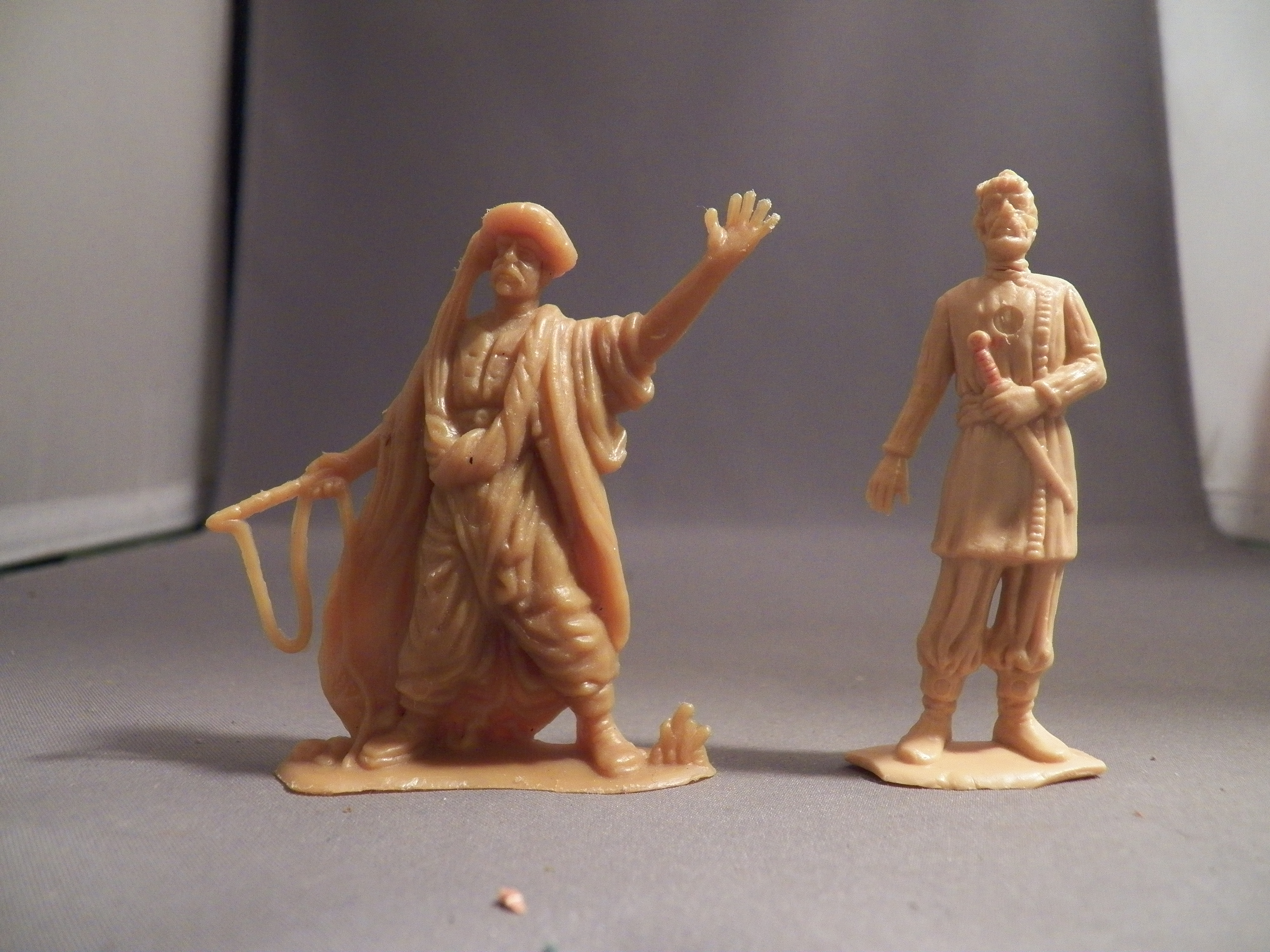 In the second photo we have two of the Oriental figures. These are based on the Karl May stories The figure on the left is slave master with a whip in his right hand. The othe figure is Schut holding a dagger. The slave master would not be made today. The figures are 60mm. The series had six figures. The hardest to find is the Belly dancer. She would be another figure that would be made today. We have the Belly dancer that Peter Bergner gave Laurie years ago and at moment it is hiding.