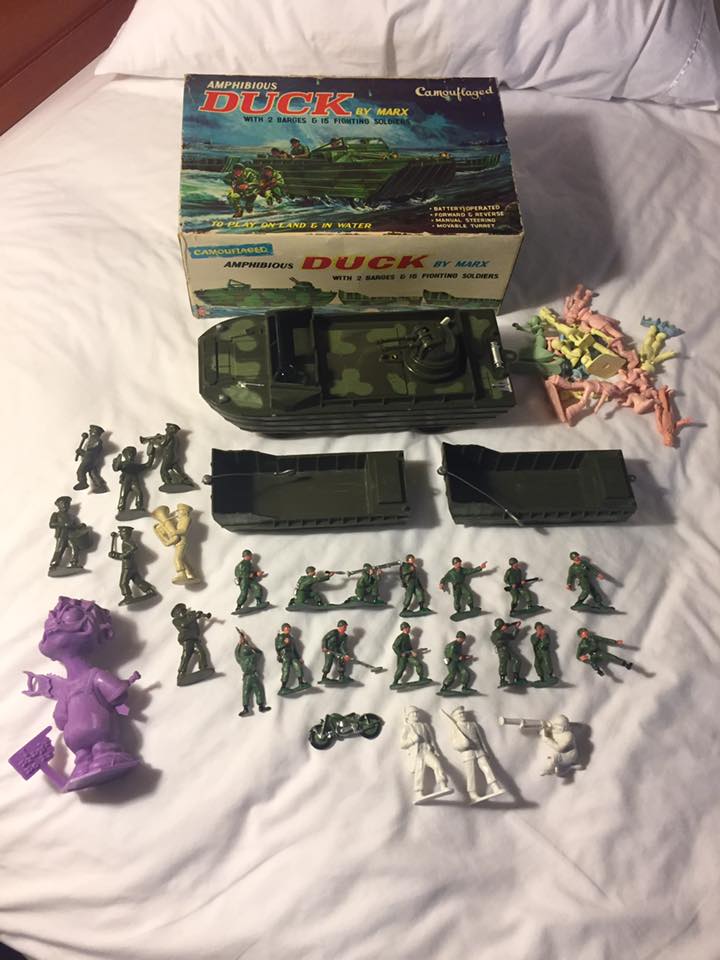 Here you can see the contents of the set along with some of the other items James got at the show. (Marx Blame it, Marx band and Comic character figures.)